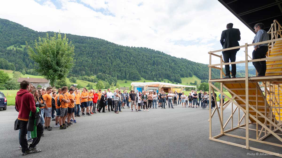 und gleichzeitig Bezug auf die Architektur des Werkraumhauses nahm. Die temporäre Konstruktion unter dem ausladenden Dach des Baus von Peter Zumthor war zugleich ein Nistplatz für den Nachwuchs.