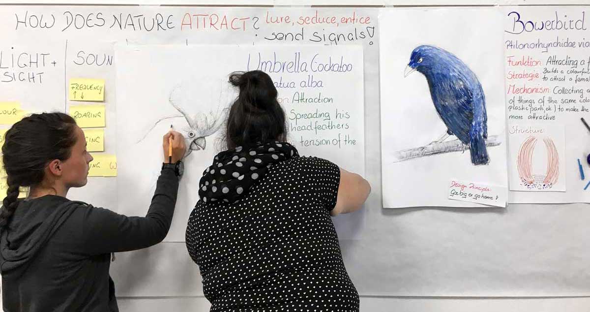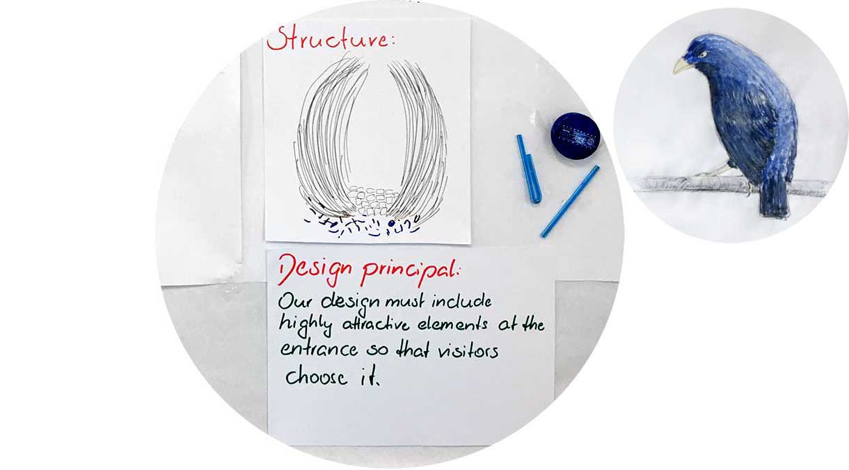 How does Nature Attract? This was the leading question during the Biomimicry Thinking Design Process, and the Bowerbird was the inspirational model.