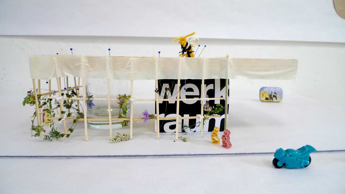 Biomimicry prototype: Claus Schnetzer Architectural model: Serge Lunin and Werkraumschule Built construction at Werkraumhaus: Serge Lunin and Werkraumschule Biomimicry sketch: Claus Schnetzer next G Bautage: Serge Lunin and Werkraumschule