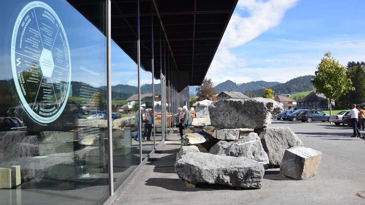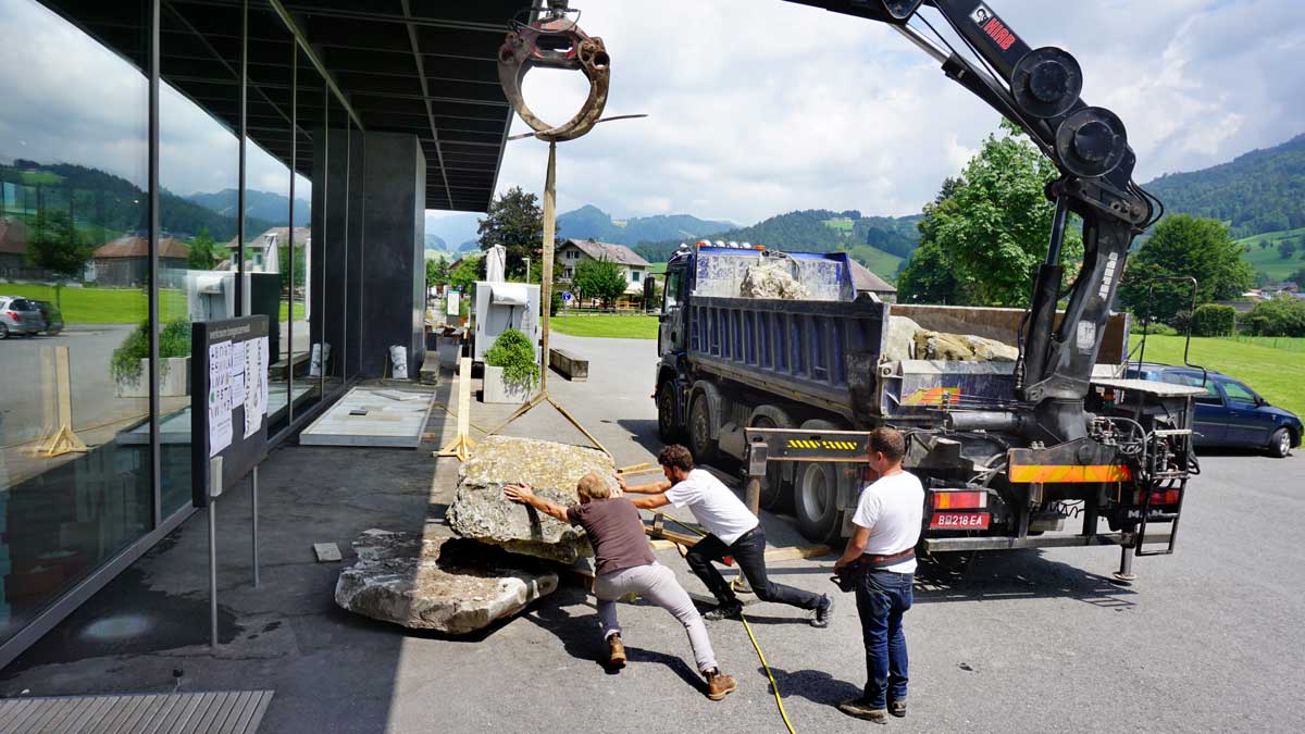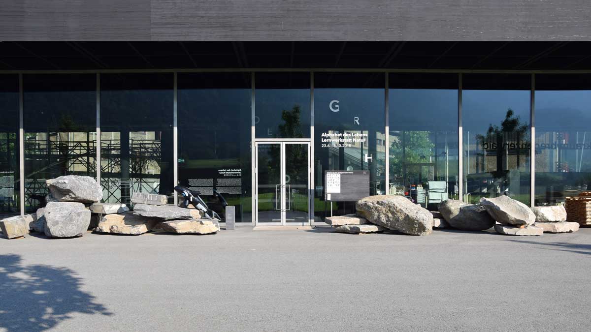 Design research at Steinwerk Andelsbuch Installation at the entrance of the exhibition Playground for people and animals